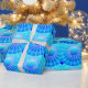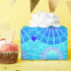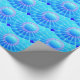 Twelve point mandala pattern gift wrap in a satin gradient of overlapping discs centring around a spoked wheel of stars - shades of turquoise / peacock and aqua, accented with soft violet