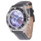 My husband loves the watch, he likes the dial, the graphics, the band, and it keeps perfect time.