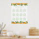 Mandarin oranges, leaves and blossoms. You can change the font and font colour. The invitation has a matching orange pattern on the back.