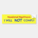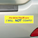 Mandated Healthcare, I WILL, NOT, COMPLY Bumper Sticker