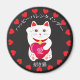 Cute and humourous Maneki Neko (Lucky Cat) holding a heart with “Love” for Valentine's Day. “Happy Valentine's Day” and “Maneki Neko (Lucky Cat)” in Japanese.