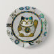Maneki Neko Lucky cat on pearl and abalone 7.5 Cm Round Badge