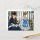 Manet The Railway postcard. Oil painting on canvas from 1873. One of Edouard Manet’s most celebrated paintings, The Railway or The Gare Saint-Lazare (Le Chemin de Fer) depicts model Victorine Meurent sitting before an iron fence with an open book and sleeping puppy in her lap. Beside her stands a little girl in a cute white dress with a big blue ribbon. The white steam of a moving train can be seen behind the fence. A beautiful example of Manet’s realist sense of impending modernism. A great gift for fans of Manet, famous puppy paintings, French realism, and modern art.