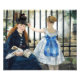 Manet The Railway print. Oil painting on canvas from 1873. One of Edouard Manet’s most celebrated paintings, The Railway or The Gare Saint-Lazare (Le Chemin de Fer) depicts model Victorine Meurent sitting before an iron fence with an open book and sleeping puppy in her lap. Beside her stands a little girl in a cute white dress with a big blue ribbon. The white steam of a moving train can be seen behind the fence. A beautiful example of Manet’s realist sense of impending modernism. A great gift for fans of Manet, famous puppy paintings, French realism, and modern art.