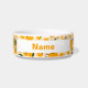 This is a heavy, durable bowl decorated with Tibbies of many colors, the perfect size for hungry/thirsty Tibs. The design is interesting and printing clear.