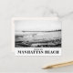 This black and white postcard features a stunning view of the Manhattan Beach Pier, captured from the ocean. The vintage-style photograph shows the pier extending into the sea, with the beach and surrounding coastline visible in the background. It's the perfect souvenir or gift for beach lovers, fans of mid-century modern photography, or anyone who loves the California coast.