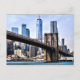 Manhattan, cityscape photograph with skyscrapers and Brooklyn bridge