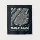 The stylised black and white map illustrations of the Manhattan area in New York City.
