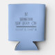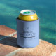 Good quality can cooler in dark powder blue featuring Manhattan New York City design with coordinates.