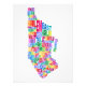 A typographic text map of the Manhattan area of New York City. The map is made from the names of districts and neighbourhoods of Manhattan, New York City, with multicoloured text on a white background.