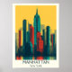 Experience the iconic grandeur of Manhattan, New York City, with this captivating vintage travel poster. Featuring its world-famous skyline with towering skyscrapers under a vibrant sky, it captures the unparalleled energy and urban sophistication of this global metropolis. An essential piece for NYC lovers, urban art collectors, or a timeless tribute to the Big Apple.