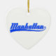 Manhattan, New York City, written with a swash (tail). Fonts in white and blue. Original text design.