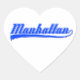 Manhattan, New York City, written with a swash (tail). Fonts in white and blue. Original text design.