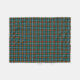 Fleece blanket with the tartan for Manitoba, Canada. Traditional plaid pattern in shades of bottle green, red and gold, with light blue highlights.