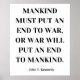 One of the strongest and most crucial quotes about war, by J F K: Mankind must put an end to war, or war will put an end to mankind