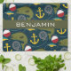 Manly Fisherman Pattern with Custom Name Tea Towel