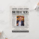 This 50th birthday party invitation is designed like a classic newspaper for a unique and playful look. It includes eye-catching headlines such as “Birthday News” and “Look Who’s Turning Fifty”, plus a photo area that can be replaced with your own image.