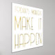 Beautiful, elegant, and simple real gold foil printed motivational Today's Mantra Make It Happen quote. This stylish and trendy gold foil poster with a vintage chic minimalist typography script aesthetic is a perfect gift for a procrastinator's birthday.