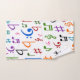 This towel set design features a pattern involving various music notes and music notation symbols coloured a variety of colours. [~Z0000105]