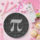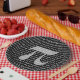Celebrate March 14 parties with this "pi plate," which features an oversized Pi symbol overlaid with many digits of this mathematical constant, rendered in a 60s OCR-style punch card font.