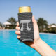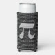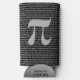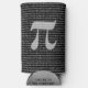 Celebrate March 14 with this seltzer can cooler, which features an oversized Pi symbol overlaid with many digits of this mathematical constant, rendered in a 60s OCR-style punch card font on a black background. Reverse shows identical design.