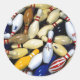 Sticker with lots of old brands and types of bowling pins. Image copyright by CDE Software.