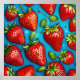 Many strawberry fruit, painting, in the central vertical axis, located near and most in the centre of the image with sky background art painting, psychedelic art stained glass whimsical luminescence 3DK