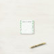 This note design features many triangle shapes of various sizes coloured various shades of green. It also features a custom name near the top.