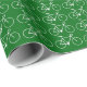 This wrapping paper design features many simple white bicycle icons on a green background.