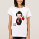 This Kokeshi has an apple pattern kimono and an apple on her sleeve.