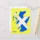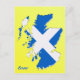 Postcard of a Scotland map blended with the colours of the Scottish St. Andrew's Saltire flag against SNP coloured backdrop