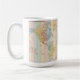 This design features a public-domain map of the world with the standard time zones for each region colour-coded. There are twenty-four time zones displayed, with non-standard half-hour time zones also listed. The map shows all of the world's major countries: it shows the continents of Asia, Africa, North America, South America, Europe and Australia. The time zone of Universal Time Coordinated (UTC) is displayed in the centre of the map, while earlier time zones are shown to the left and later time zones are shown to the right.