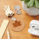 Maple leaf engraved on wood design key ring