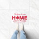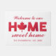 Red and white Home Sweet Home doormat with the O in home replaced by a maple leaf. Add your family name too and the year your family was established.