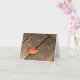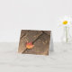 A single maple leaf on weathered wooden boards signifies the fall season. An orange and red leaf and brown weathered boards show off the subdued colours of the season. Share your love of fall and thanksgiving with this blank greeting card. The minimalist photograph is also available as a poster and as post cards which are great for personalised thanksgiving invitations.