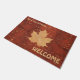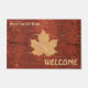 A digital recreation of a Maple (Acer spp.) leaf silhouette formed by carefully scraping off the reddish outer surface on the reverse side of birchbark to reveal the lighter, yellowish layer beneath. This is a traditional craft among Native Americans/First Nations across the northern United States and Canada. Customisable text reading, " WELCOME" also appears and there is an additional place for you to add your own text.