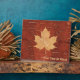 A digital recreation of a Maple (Acer spp.) leaf silhouette formed by carefully scraping off the reddish outer surface on the reverse side of birchbark to reveal the lighter, yellowish layer beneath. This is a traditional craft among Native Americans/First Nations across the northern United States and Canada. Add your own text.