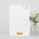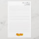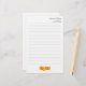 Personalised stationery with speciality paper available (basic white is shown) in a Fall theme. Golden yellow and orange-red maple leaves decorate the bottom of this lined writing paper with templates for custom text at the top. Add a name in script and address (two lines) beneath. Delete all example text to order this paper blank.
