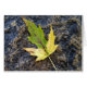 Yellow maple leaf on a stone wall, raindrops. Autumn colours.