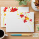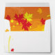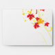 Beautiful maple leaves in autumn colours in red, orange and yellow and swirls.