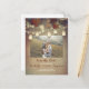 Burgundy maple leaves, mason jars, string lights and rustic burlap fall photo save the date postcards