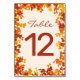 Maple Leaves Orange & Terracotta Autumn Wedding Table Number