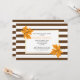 Orange maple leaves and brown, white striped pattern wedding bridal shower invitation. A contemporary fall wedding invite that features orange maple leaves with brown veins, a white frame with gold outline with your text and a striped pattern border.