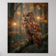 A wise maple owl perches proudly in an autumn grove filled with warm lantern light and drifting leaves. Realistic owl anatomy blends with layered maple foliage, bark textures, rich feather detail, and glowing amber eyes. Twilight mist surrounds branches and woodland depth, creating a cozy seasonal atmosphere full of charm and mystery. This decorative fantasy design is ideal for fall interiors, cabins, libraries, offices, or seasonal gifts. Perfect for owl lovers, woodland decor fans, and autumn home styling.