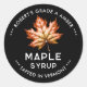 Editable homemade maple syrup canning label featuring a vintage style maple leaf illustration. Make your own canning labels for your favourite homemade recipes. Perfect for preserves, homemade gifts or as kitchen pantry organiser.