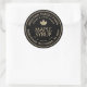 Add in your business name, address, volume of syrup and maple syrup grade. Elegant black and gold label with a gold sugar maple leaf.