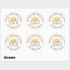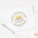 Simple and Elegant Round White Maple Syrup Label with the words "Maple Syrup" in a metallic gold text. Business name and location in embossed text. Dashed line border in gold. Editable form field for Grade of Maple Syrup and net weight. Yellow autumn sugar maple leaf tinged with orange.