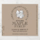 Edit your business name, address, volume of maple syrup and grade. Optional vertical text on the right describes popular serving suggestions for maple syrup, while the left side of the label provides editable text to write the batch number and harvest date of your maple syrup.