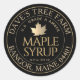 Maple Syrup on Black with Gold Maple Leaf Classic Round Sticker