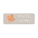 A simple label with a grunge-textured red maple leaf and the words “MAPLE SYRUP” printed in an elegant, decorative font on maple jug tan. Return-address size 2.25" L x 0.75” H. This label looks especially nice on grayish-ivory plastic maple syrup jugs and is also perfect for small maple syrup jars.